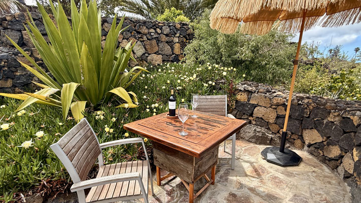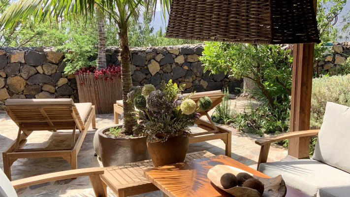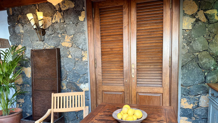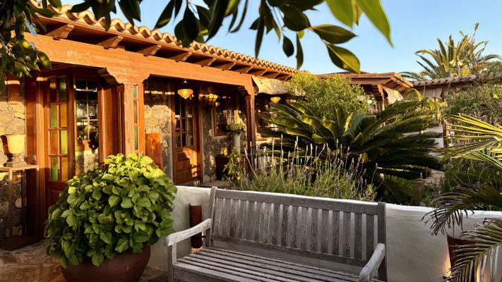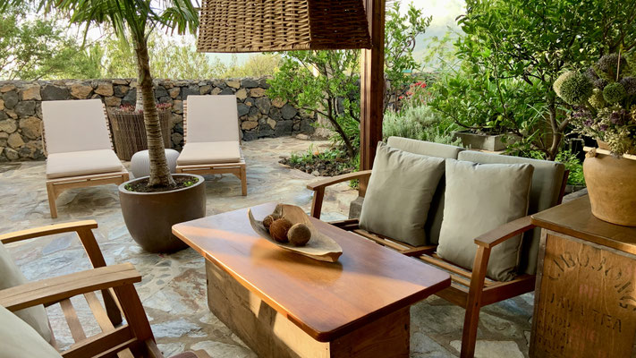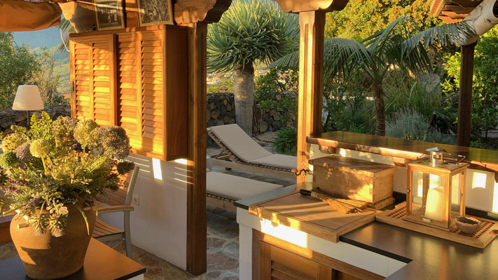 In den letzten Jahren wurde das Objekt gefühlvoll weiterentwickelt und mit modernster, ökologischer Technik ausgestattet. Auf der Plantage, heute mit Zitrusfrüchten und Lavendelstauden, sind Sie völlig ungestört mit Ihren Gedanken, umgeben von Bergen, schattigen Plätzen mit Wasserspiel und der unendlichen Weite des Atlantik.